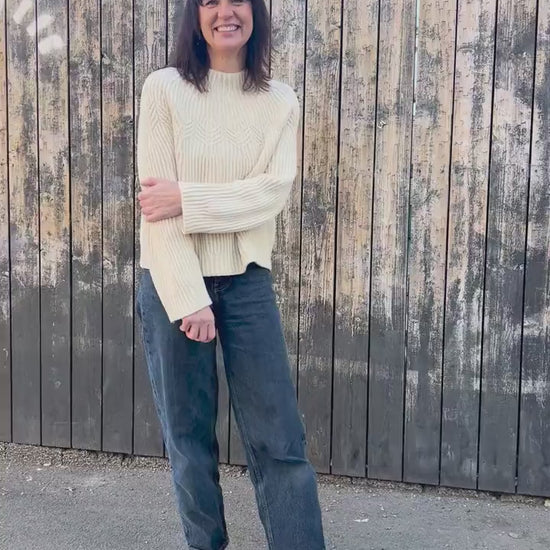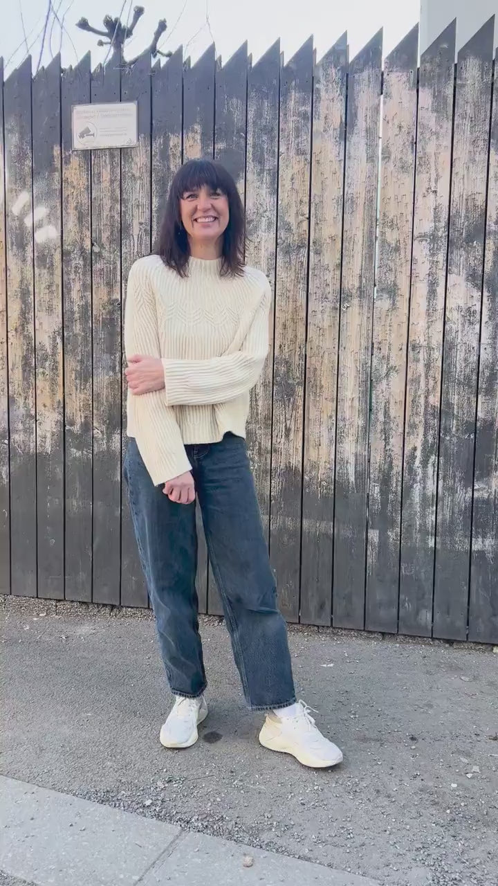 A softly structured, year-round sweater with a radiating twisted-rib yoke that flatters every size ✨ Knit top-down with smooth shaping (German short rows) for a comfy neckline. Light, breathable, and easy to wear every day. 🌿🧥